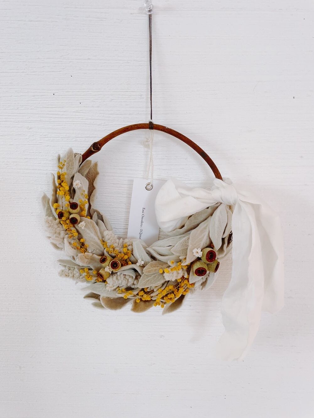 ラムズイヤーとミモザのシックなハーフリース20cm