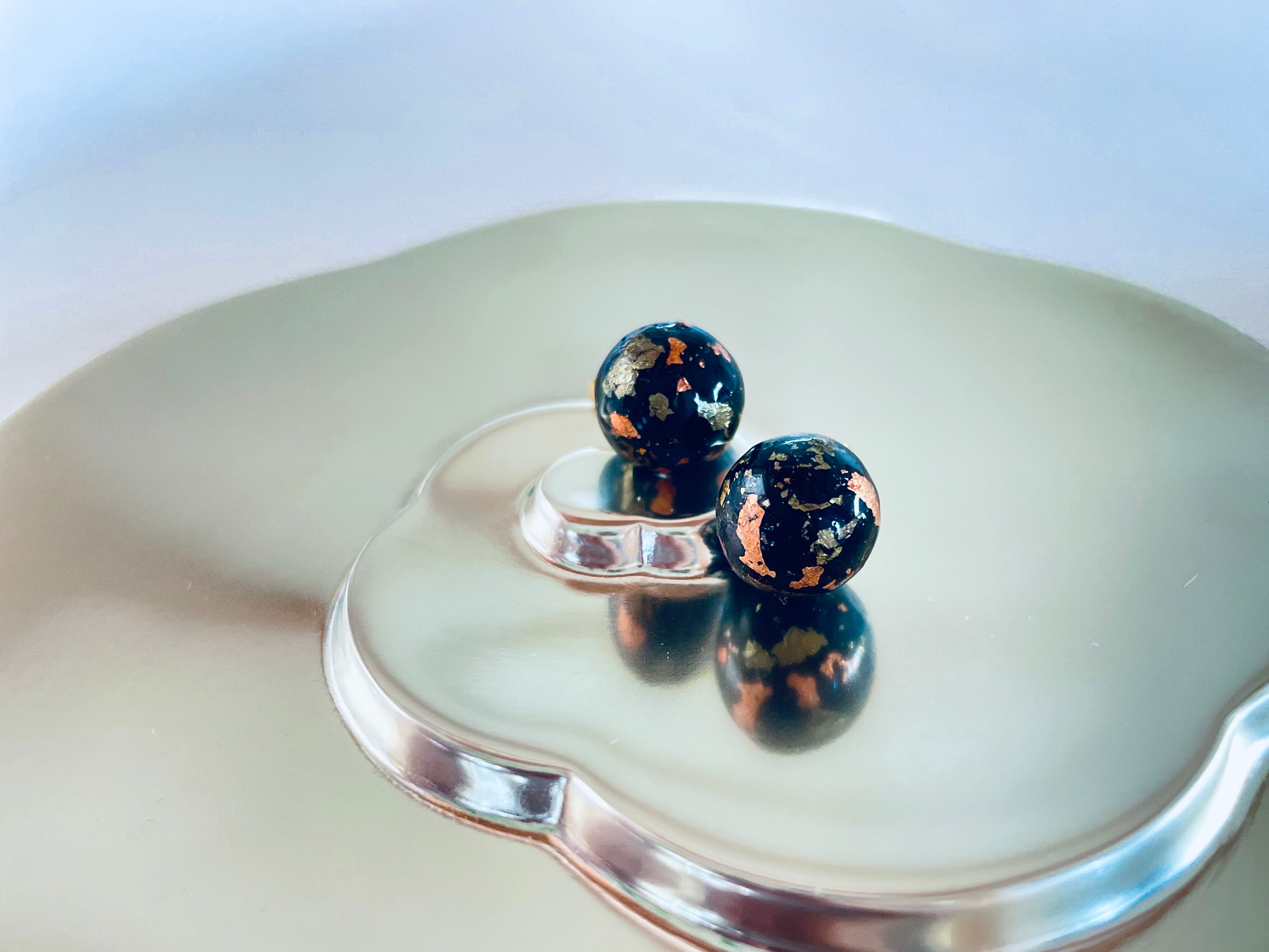 豊かな自然との調和を感じ、深い緑の惑星を思わせる、神秘的で美しいピアスです。