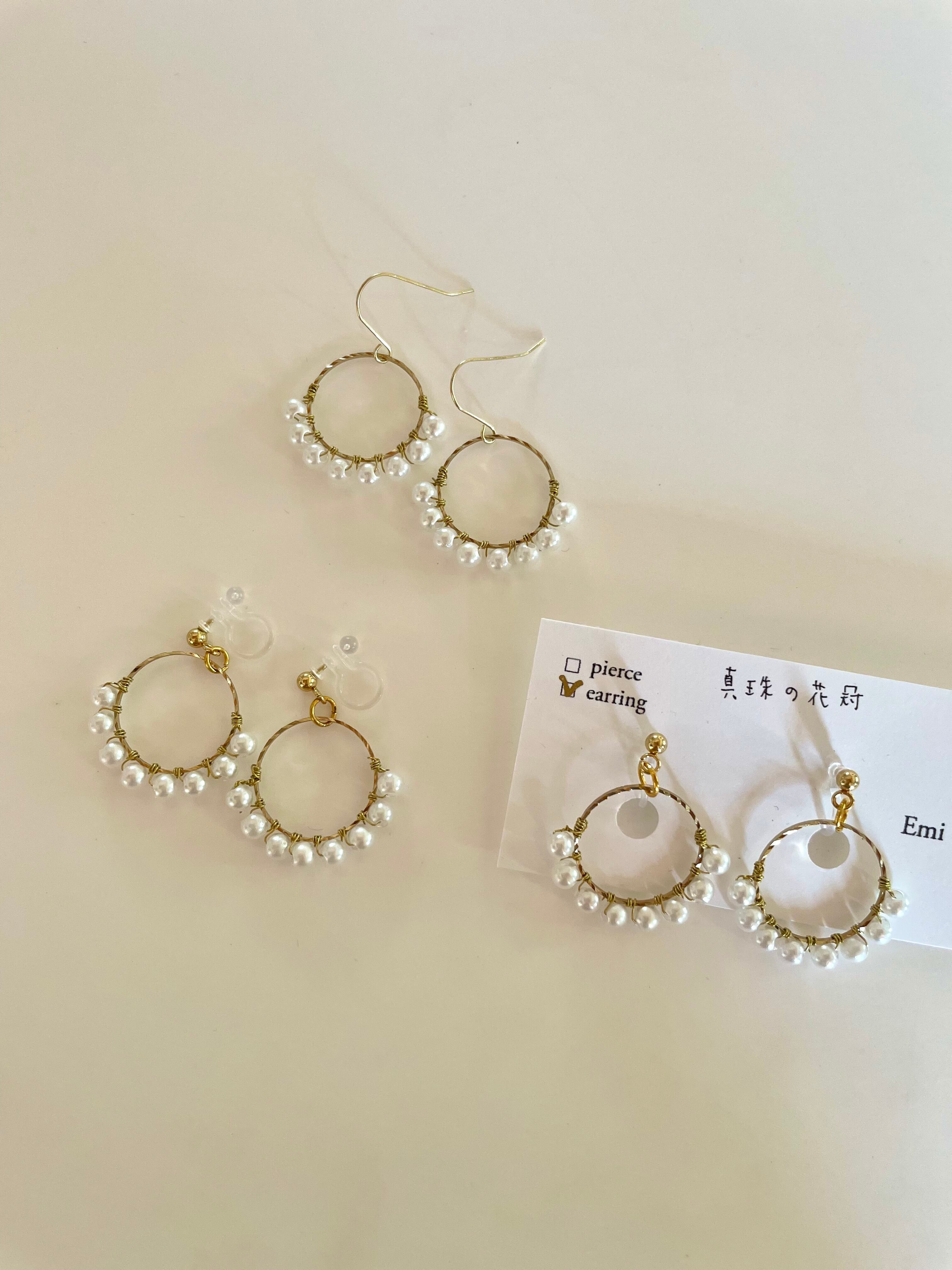 サイズは直径約20mmで、華やかさと軽やかさを両立したアイテムです。真珠の花冠のような自然な美しさを、ぜひお手元にお迎えください^ ^